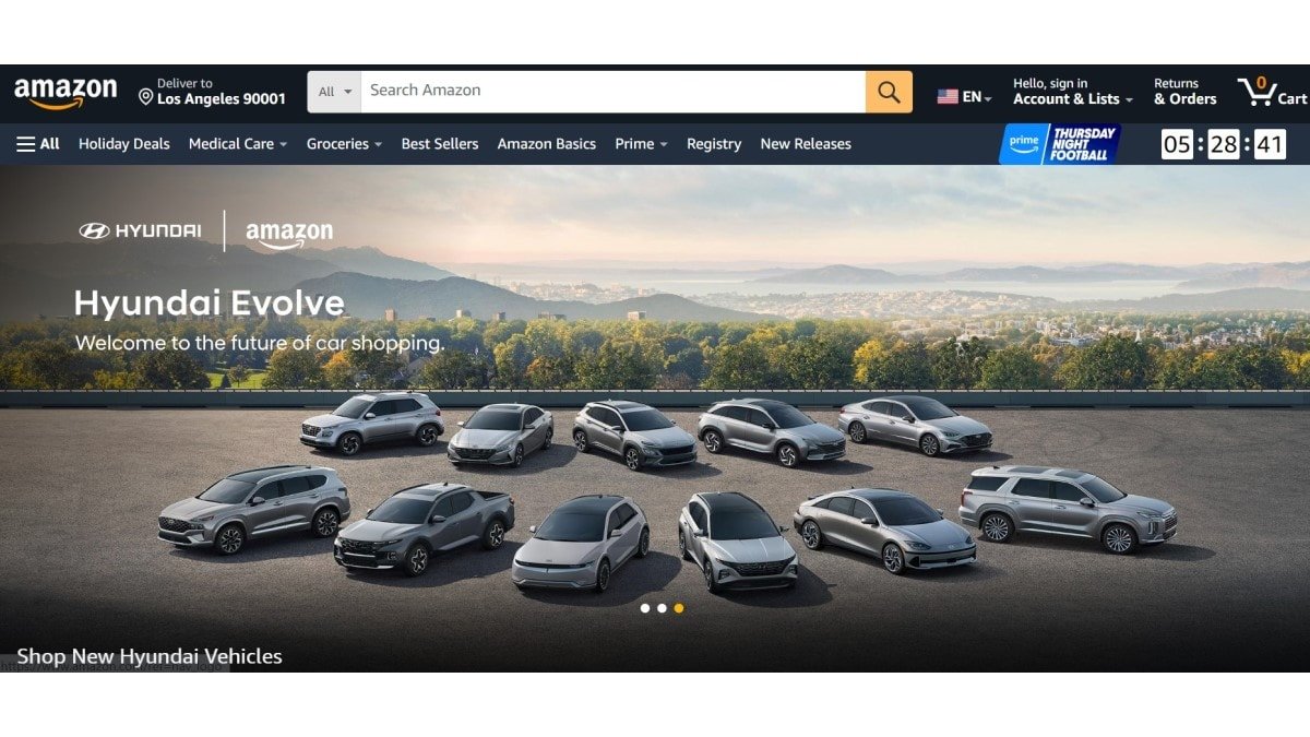 Starting in 2024, Hyundai says, “Customers will be able to search on Amazon for available vehicles in their area based on a range of preferences, including model, trim, color, and features, choose their preferred car, and then check out online with their chosen payment and financing options — all within the Amazon experience they already know and trust.”